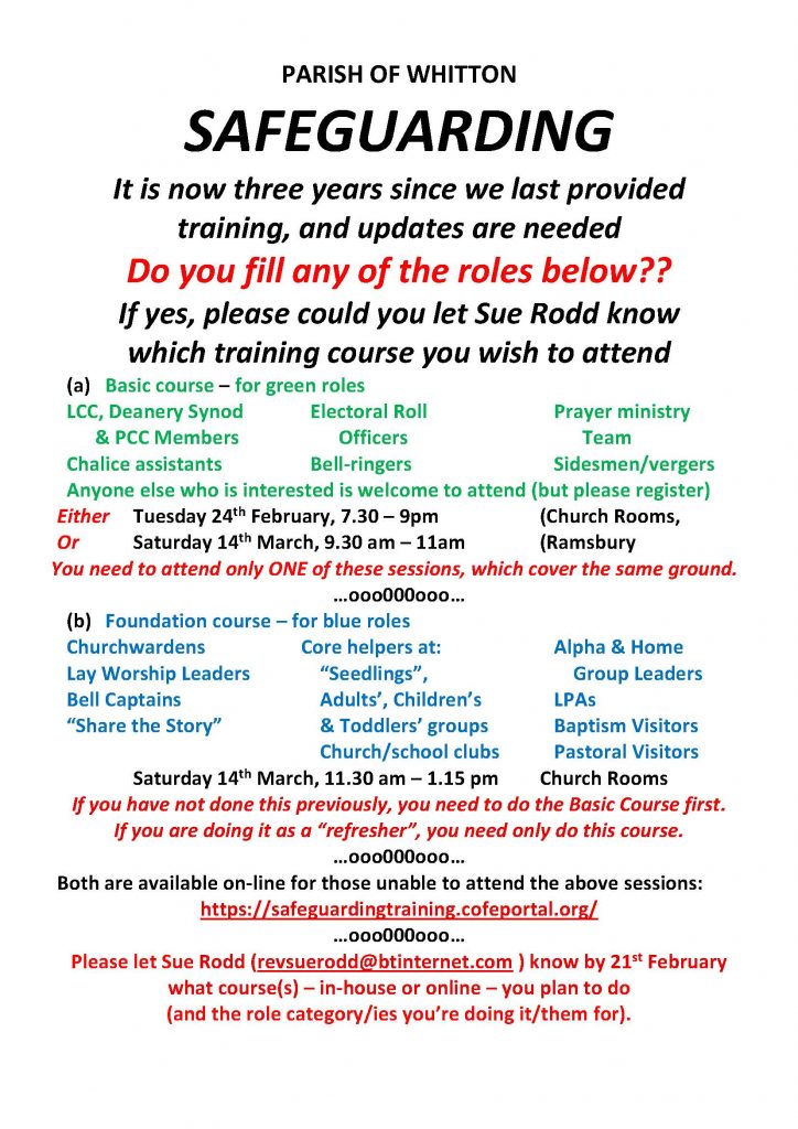 The Whitton Team Benefice PCC has formally adopted the House of Bishops’ Promoting a Safer Church: Safeguarding Policy Statement. Any queries should be addressed to safeguarding@pccwhitton.onmicrosoft.com or to a member of the clergy.