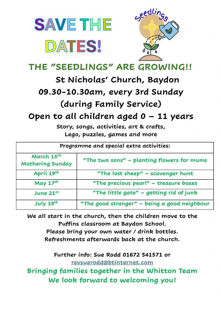 - the Revd Sue Rodd (01672 541571 or revsuerodd@btinternet.com)
